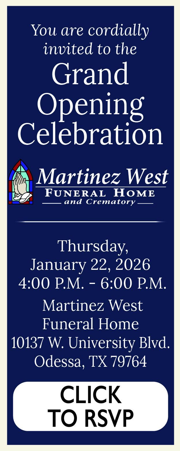 Visitation will be held from 1:00 p.m. to 9:00 p.m. on Thursday, December 18th, 2025, at Martinez “West” Funeral Home, located at 10137 West University Boulevard, Odessa, Texas 79764.